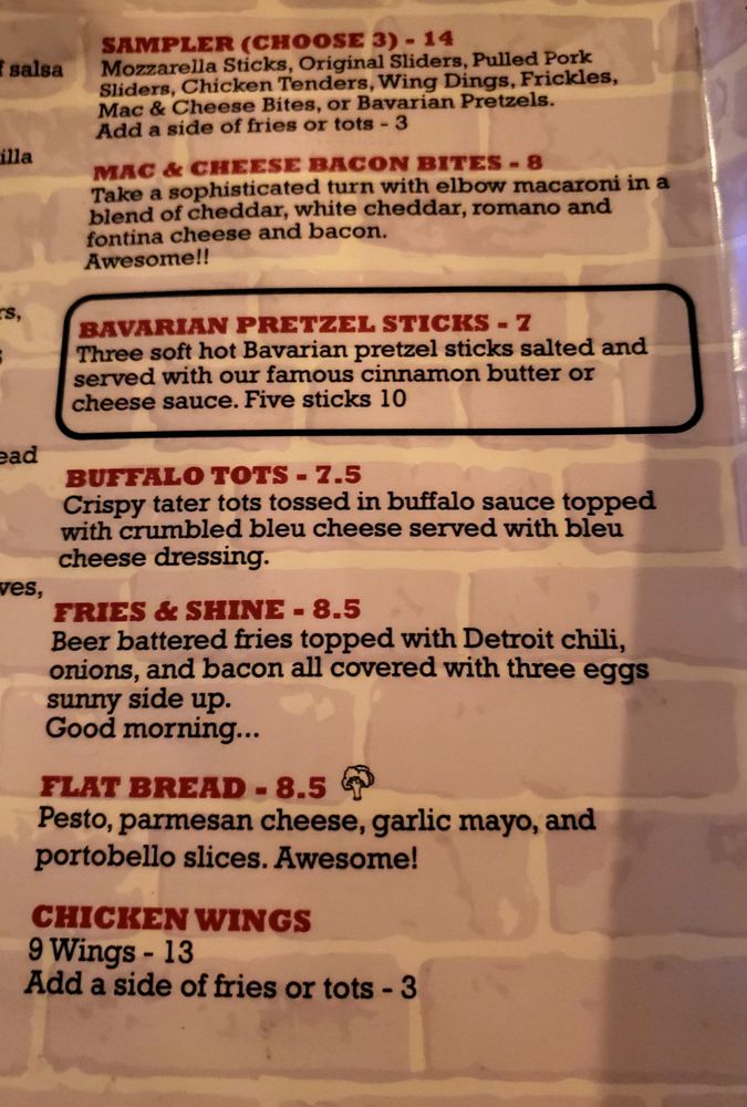 Soft and hot Bavarian pretzel sticks salted. Served with cinnamon butter and cheese sauce.