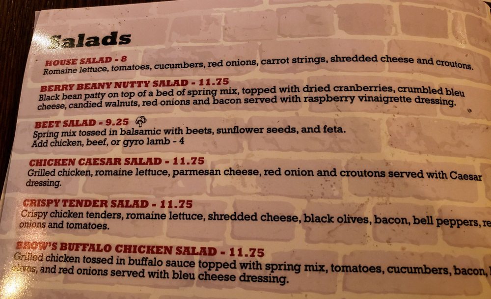 Black bean patty on top of a bed of spring mix, topped with dried cranberries, crumbled Bleu cheese, candied walnuts, red onions, and bacon. Served with raspberry vinaigrette dressing.