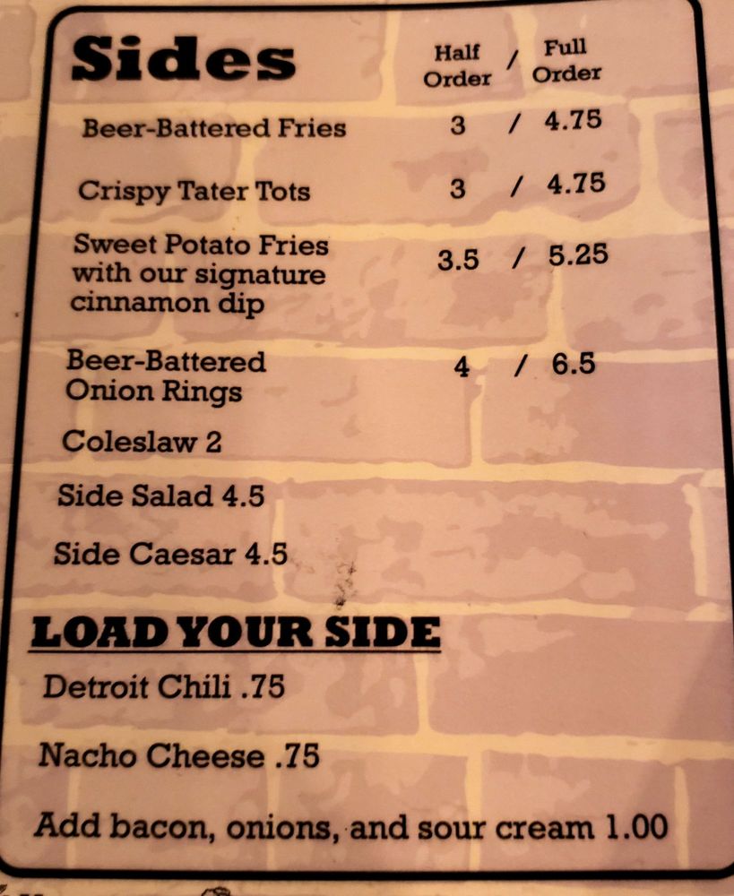 Beer battered fries topped with Detroit chili, onions, and bacon all covered with 3 eggs sunny side up.